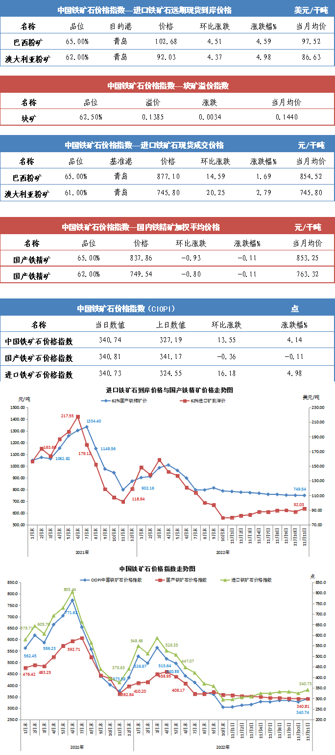 【行業(yè)指數(shù)】11月11日中國鐵礦石價格指數(shù)