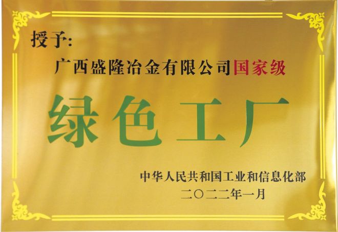圖為盛隆冶金國家級綠色工廠標志牌。