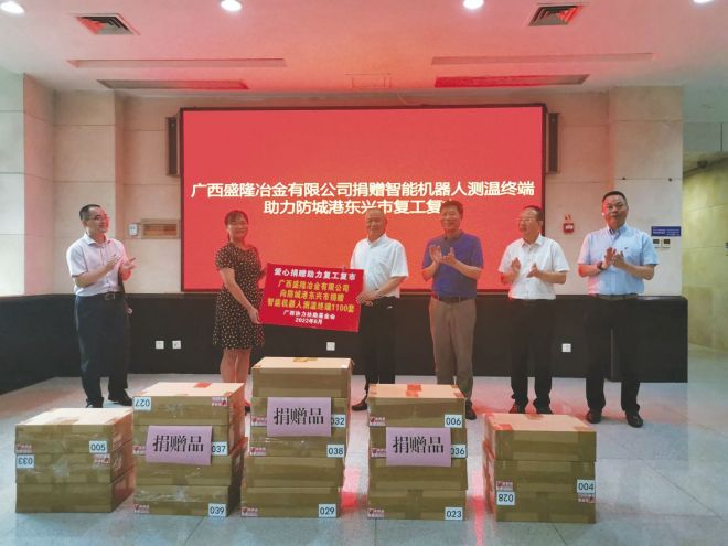 對外,盛隆冶金秉承國有所需、必有所為的理念,切實履行企業在疫情防控中的社會職責擔當,以強烈的家國情懷投身到抗擊疫情的行列中來。2020年初,面對來勢洶洶的新冠肺炎疫情,盛隆冶金積極響應自治區黨委、政府的號召,落實統一部署,第一時間向自治區政協和自治區工商聯分別捐款500萬元,作為廣西、防城港市防控疫情專項資金,這筆資金為防城港市人民醫院帶去了新的負壓病房,為上思縣和防城區帶去了救護車和醫療設施。2022年初,盛隆冶金了解到防城港市疫情防控資金緊張,立即通過防城港市紅十字會向防城港市捐贈100萬元用于防城港市疫情防控經費,并積極響應防城港市政府的幫扶政策,通過廣西協力扶助基金會向東興市捐贈了1100臺智能機器人測溫終端,助力東興市復工復市。