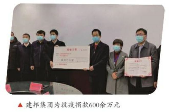 2020年,面對突如其來的全球新冠肺炎疫情,建邦集團董事會、黨委、總經理辦公會及時發動全體干部員工、黨員和積極分子向武漢市捐款,并向意大利、德國、巴基斯坦、伊朗、印尼、澳大利亞的合作伙伴捐贈防疫物資價值7.04萬元。近3年來,建邦集團累計為疫情防控捐款610萬元,其中,黨員和積極分子個人為疫情愛心捐款25168元、繳納特殊黨費17618元,充分發揮了黨組織的戰斗堡壘作用和黨員的先鋒模范作用,受到上級黨委和山西省工商聯的表彰。