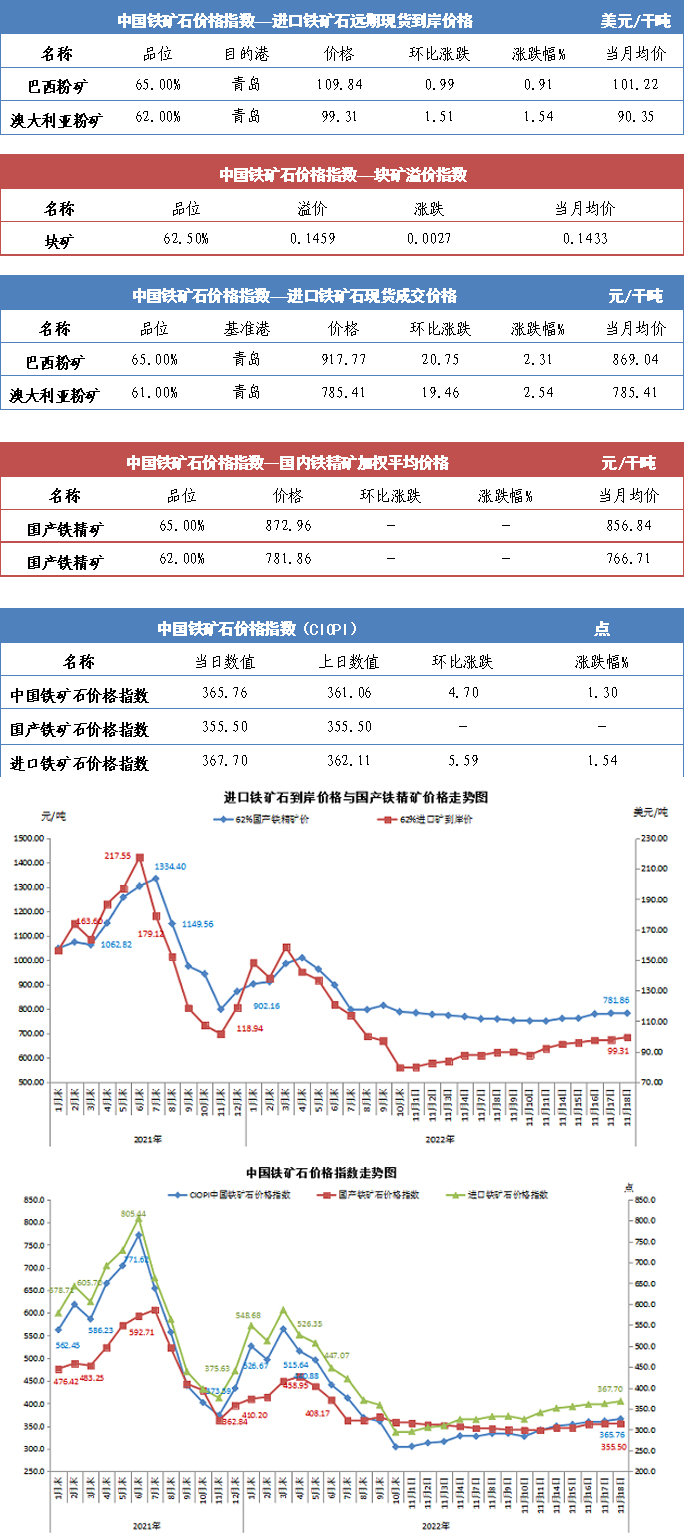 【行業(yè)指數(shù)】11月18日中國(guó)鐵礦石價(jià)格指數(shù)