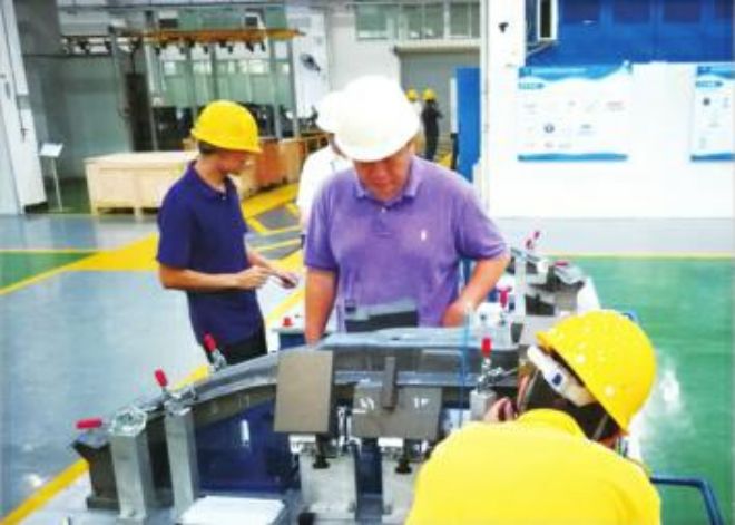 該團隊成員在中錳鋼溫成形汽車B柱試制現場