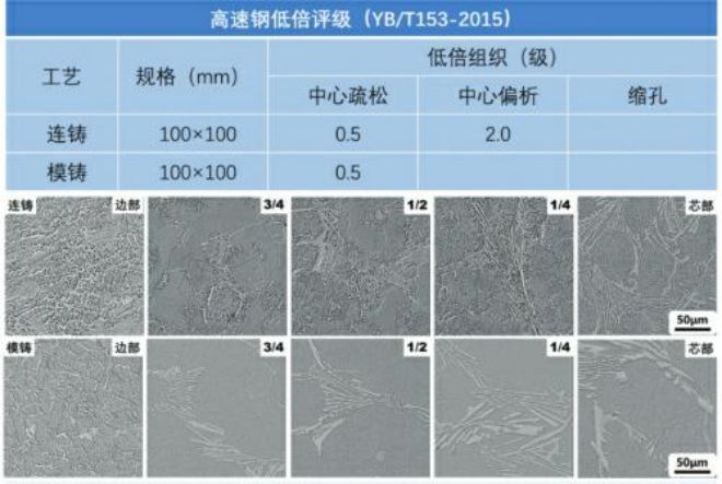 高速鋼弧形連鑄與模鑄工藝的組織對比