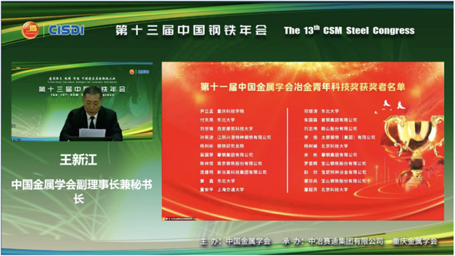 11月23日,受疫情影響,第十三屆中國鋼鐵年會在線上開幕,第十一屆、十二屆中國金屬學(xué)會冶金青年科技獎頒獎典禮同期一并舉行,中國金屬學(xué)會副理事長兼秘書長王新江宣布了獲獎名單。