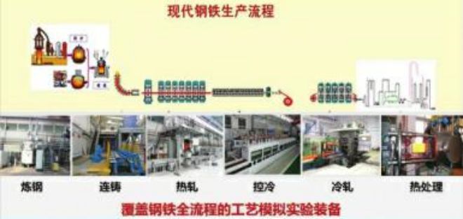 東北大學RAL實驗室長期致力于鋼鐵中試實驗技術和裝備的研發工作,解決了實驗與大生產的工藝條件相似性、大生產工藝的實驗室再現等關鍵技術問題;開發出涵蓋鋼鐵生產全流程的熔煉、熱軋、冷—溫軋、退火、熱模擬等系列化中試實驗裝備,形成了功能完備、高效準確的中試實驗設備技術。