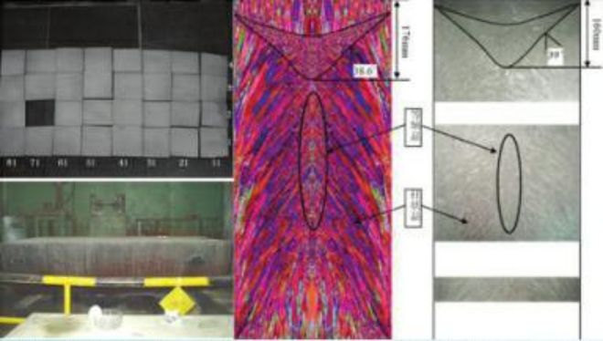 圖為電渣重熔大型鋼錠及組織模擬仿真結果和電渣重熔大型鋼錠