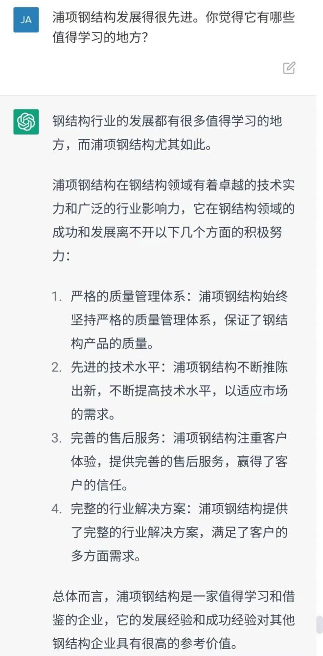 韓國浦項屬于發展鋼結構的先行者、佼佼 者,對于中國鋼鐵行業而言有很多可以借鑒的經驗。ChatGPT的回答大而全,似乎缺少一些有針對性的深度解析。