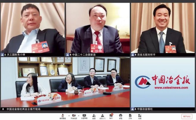 2023年3月9日20時(shí)許,在中國(guó)冶金報(bào)社第二場(chǎng)2023年《兩會(huì)云客廳》上,來(lái)自鋼鐵行業(yè)的3位全國(guó)人大代表,通過(guò)視頻連線就企業(yè)家精神、鋼鐵行業(yè)如何推進(jìn)高質(zhì)量發(fā)展及如何打造世界一流企業(yè)等話題進(jìn)行了交流。圖為“云合照”。(代鑫 制圖)