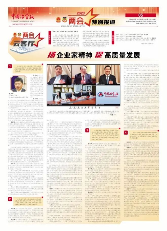 3月9日,《兩會(huì)云客廳》邀請(qǐng)了來(lái)自鋼鐵產(chǎn)業(yè)鏈的多位全國(guó)人大代表參與此次論壇,圍繞“揚(yáng)企業(yè)家精神 促高質(zhì)量發(fā)展”話題聊心得、談體會(huì),為鋼鐵產(chǎn)業(yè)鏈高質(zhì)量發(fā)展建言獻(xiàn)策。