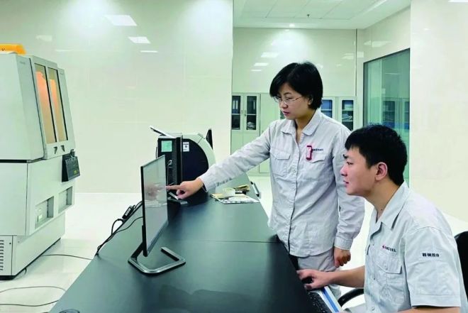 ▲海洋裝備用金屬材料及其應用國家重 點實驗室科研人員正在對材料進行物相分 析。依托該實驗室,鞍鋼集團為“大國重器” 提供高端鋼鐵材料,乘風破浪、向海圖強。