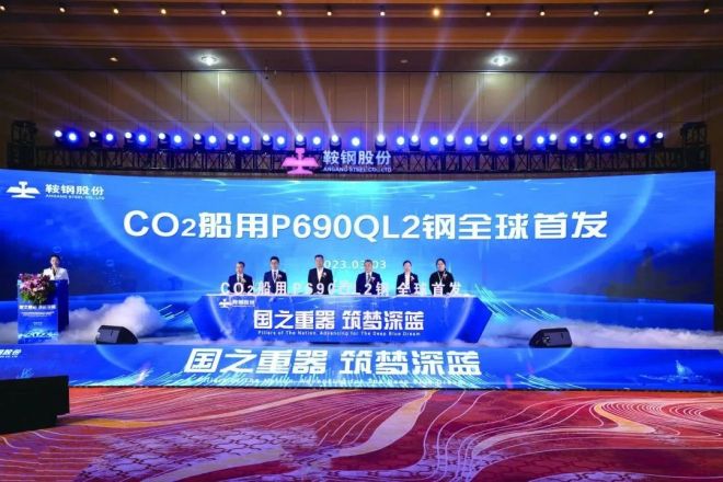 ▲2023年3月4日,鞍鋼集團全球首發二氧化碳運輸船液貨艙用690兆帕級低溫鋼。