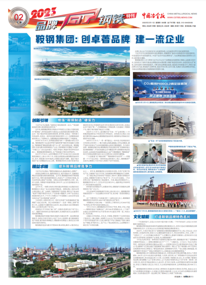 鞍鋼集團深入學習貫徹習近平總書記關于品牌建設的重要指示精神,全面落實黨中央、國務院關于新時代推進品牌建設的決策部署,明確“制造更優材料,創造更美生活”使命,堅持創新引領和質量提升,不斷加快品牌建設速度,提高技術和質量水平,持續豐富品牌文化內涵,塑造提升品牌形象,推進布局合理、競爭力強、充滿活力的品牌體系形成,為推動品牌強國建設貢獻鞍鋼的智慧和力量。