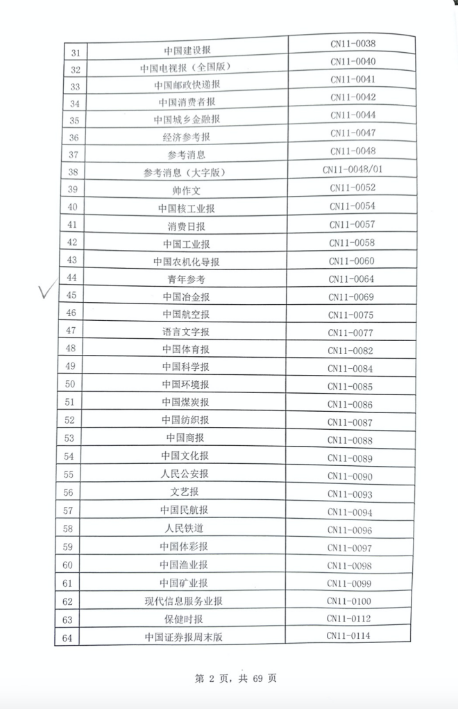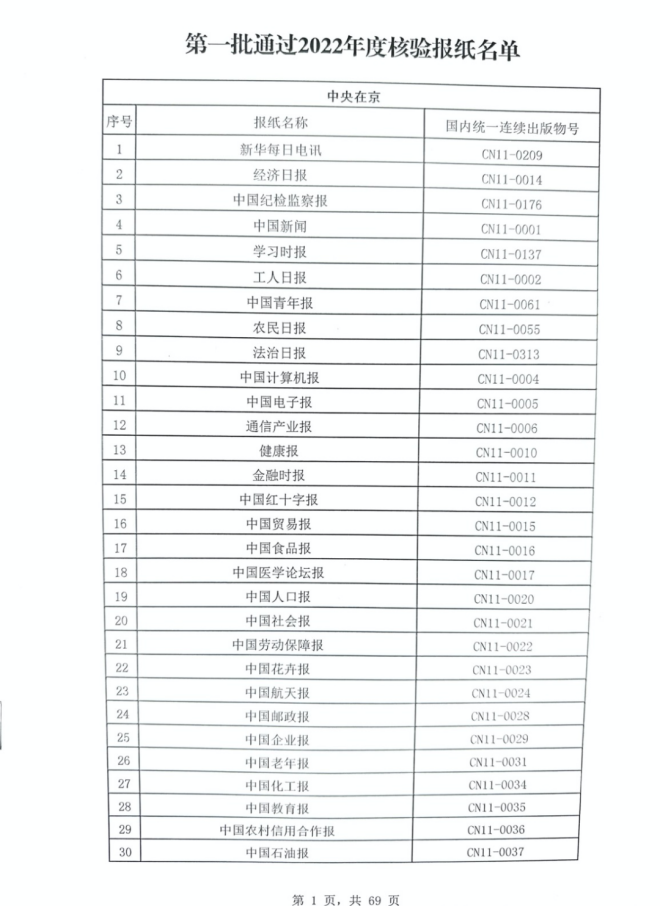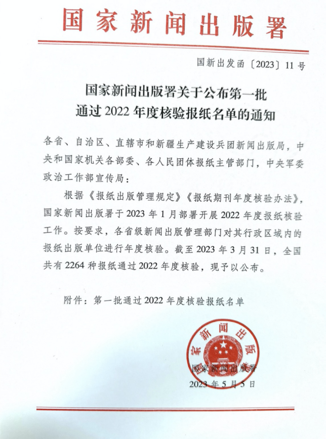 根據(jù)《報(bào)紙出版管理規(guī)定》、《報(bào)紙期刊年度核驗(yàn)辦法》,國家新聞出版署于2023年1月部署開展2022年度報(bào)紙核驗(yàn)工作。按要求,各省級(jí)新聞出版管理部門對(duì)其行政區(qū)域內(nèi)的報(bào)紙出版單位進(jìn)行年度核驗(yàn),核驗(yàn)開展的時(shí)間段為2023年2月10日—3月31日。截至2023年3月31日,全國共有2264種報(bào)紙通過2022年度核驗(yàn)。