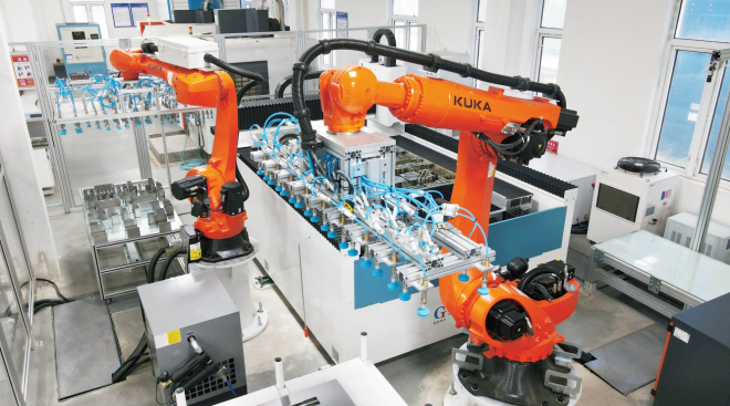 圖為2023年2月7日,廣西首臺激光切割自動制樣機械臂在廣西鋼鐵質量管理中心正式投用。(蔣國華攝)