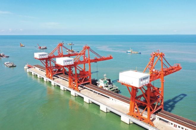 圖為2022年7月28日,廣西鋼鐵專用碼頭101號、203號泊位正式啟用。(梁升暢 攝)