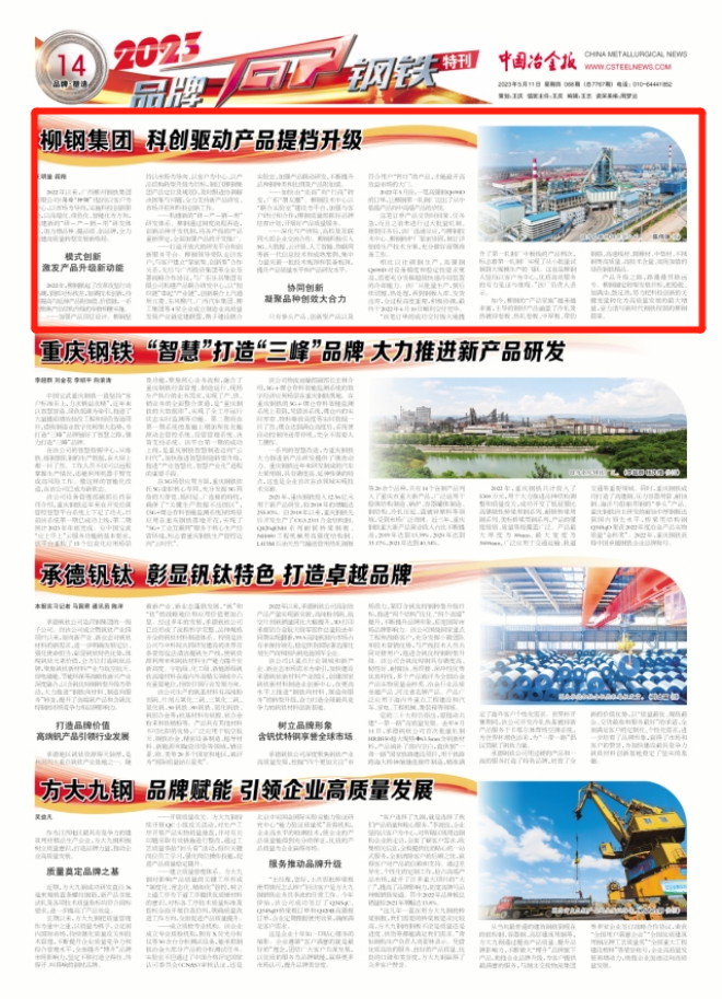 2022年以來,廣西柳州鋼鐵集團有限公司(簡稱“柳鋼”)堅持以客戶為中心,以市場為導向,實施科技創新驅動,以高端化、綠色化、智能化為方向,構建新的“研-產-銷-用”研發體系,加力增品種、提品質、創品牌,全力構建高質量轉型發展新格局。