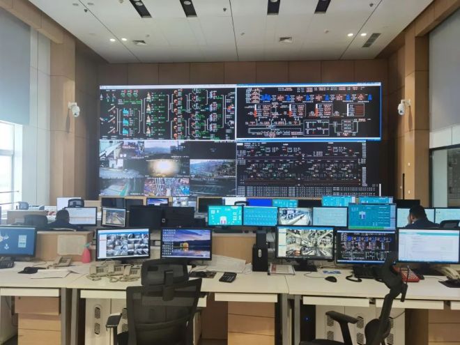 智慧指揮中心——經(jīng)營(yíng)管控智慧平臺(tái)其中的一處:重鋼管控大樓集中控制室