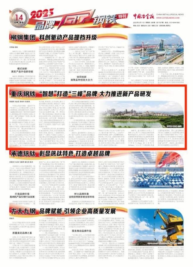 2022年,重慶鋼鐵共計(jì)投入了5300萬(wàn)元用于大力推進(jìn)品種結(jié)構(gòu)調(diào)整和質(zhì)量攻關(guān)。成功開發(fā)了低屈強(qiáng)比高強(qiáng)韌性橋梁用鋼系列、耐候橋梁用鋼系列、美標(biāo)橋梁用鋼系列,產(chǎn)品的強(qiáng)度級(jí)別、質(zhì)量等級(jí)覆蓋廣泛。產(chǎn)品最大厚度80mm,最大寬度3600mm,產(chǎn)品廣泛應(yīng)用于交通運(yùn)輸、軌道交通等重要領(lǐng)域,如重慶鵝公巖大橋、云南龍江特大橋、廣州丫髻沙大橋等重點(diǎn)工程項(xiàng)目。同時(shí)成功打造了高建鋼、壓力容器用管、耐蝕鋼、海洋與船舶用鋼的“拳頭”產(chǎn)品。重慶鋼鐵自主研發(fā)的耐蝕中厚鋼板達(dá)到國(guó)內(nèi)領(lǐng)先水平,橋梁用結(jié)構(gòu)鋼Q345qD榮獲2022年度冶金產(chǎn)品實(shí)物質(zhì)量“金杯獎(jiǎng)”。2022年獲得中國(guó)卓越鋼鐵企業(yè)品牌稱號(hào)。