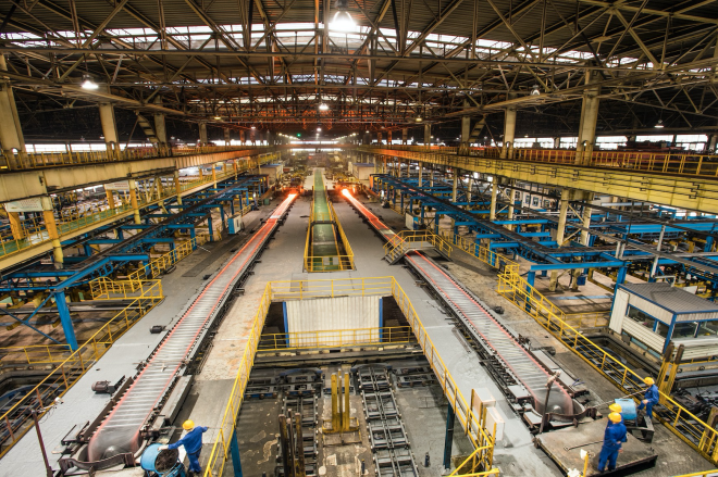 圖為中陽鋼鐵生產(chǎn)現(xiàn)場