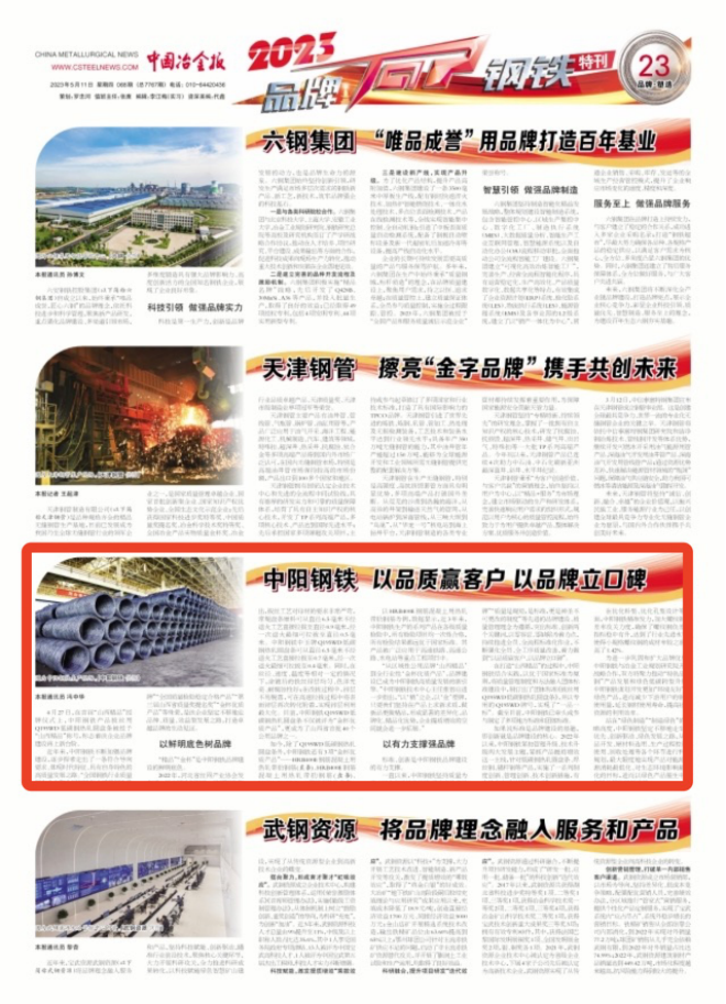 “精品”“金杯”是中陽鋼鐵品牌建設(shè)的鮮明底色。