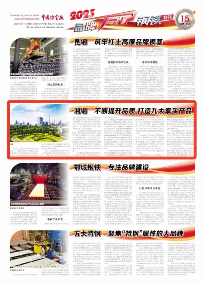 近年來,湘鋼堅持“以客戶為中心”,強化創新引領,品牌影響力進一步擴大。湘鋼打造了橋梁結構用鋼、高層建筑用結構鋼、工程機械用高強鋼及耐磨鋼、能源用鋼、鍋爐及壓力容器用鋼、鎳系低溫鋼、熱軋不銹鋼復合板、海洋工程用鋼、汽車用鋼等9個系列拳頭產品,廣泛應用于國內外各大超級工程,給其打上了“湘鋼制造”的印記,更把“湖南元素”注入世界各地。