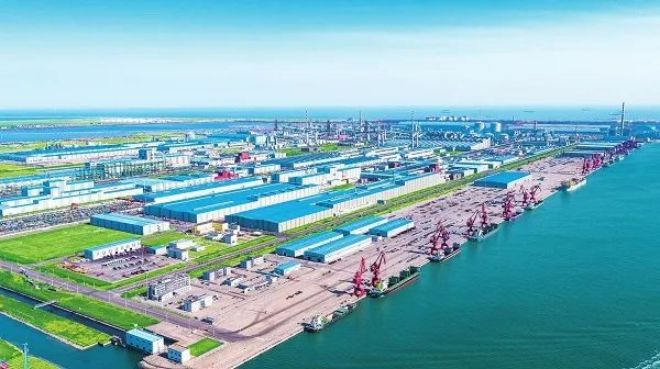 首鋼京唐充分利用臨海靠港優勢,持續優化配置海向、陸向雙向資源,構建起安全、便捷、高效的海鐵多式聯運“黃金通道”,推動成品碼頭與鐵路大動脈的無縫銜接、高效互動。同時,首鋼京唐加快發展綠色清潔能源,實施新能源車輛置換,用最短時間、最快速度、最高標準、最嚴要求,高質量完成充電樁項目建設并按期投入運行。目前,首鋼京唐原燃料和成品全部通過海洋、鐵路運輸,整體清潔運輸比例達85%以上,持續領跑行業。此外,首鋼京唐深入開展廠區生態環境治理,扎實開展土壤改良和環境治理等攻堅行動,廠區可綠化率達到100%,被評為“全國綠化模范單位”。