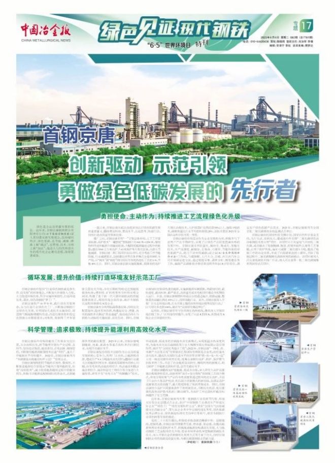 近年來,首鋼京唐被列為第一批鋼鐵行業資源節約型、環境友好型企業創建試點企業,獲評“中國鋼鐵工業清潔生產環境友好企業”“綠色工廠”“綠色發展標桿企業”,榮獲“全國大氣污染減排突出貢獻企業”、第九屆企業類中華寶鋼環境優秀獎、綠色低碳優秀品牌企業、綠色制造標準化支持單位等稱號,被譽為鋼鐵行業綠色轉型發展的典范。