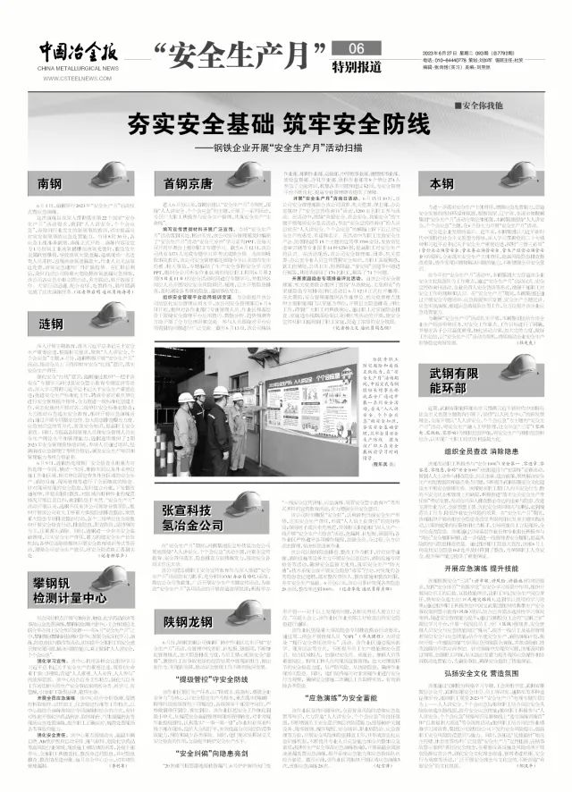 進入6月份以來,首鋼京唐以“安全生產月”為契機,圍繞“人人講安全、個個會應急”的主題,開展了一系列活動,號召廣大職工積極參與安全生產管理,共筑安全生產“生命線”。