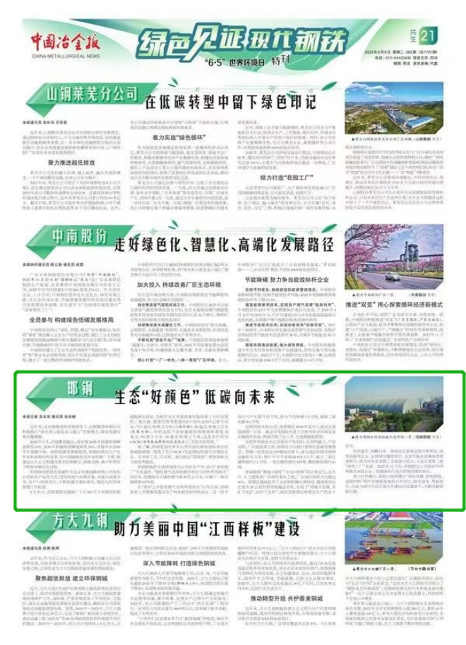 這兩項技術的應用,使邯鋼在2020年成功入選河北省低碳推廣目錄。通過采用國際先進工藝技術和對環保設備實施提升改造,邯鋼實現了全工序、全流程超低排放。