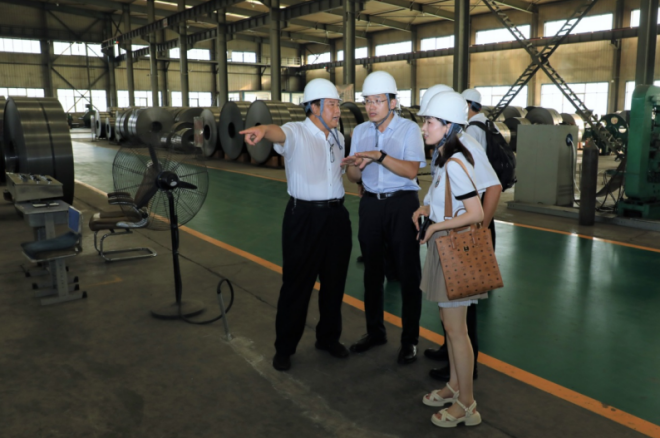 7月28日,中國(guó)冶金報(bào)社黨委書記、社長(zhǎng)陳玉千一行到鞍山發(fā)藍(lán)股份公司(以下簡(jiǎn)稱“鞍山發(fā)藍(lán)”)參觀學(xué)習(xí)。鞍山發(fā)藍(lán)總經(jīng)理王恩棟接待了陳玉千一行。中國(guó)冶金報(bào)社視覺(jué)中心主任顧學(xué)超、新媒體中心副主任徐可可陪同。