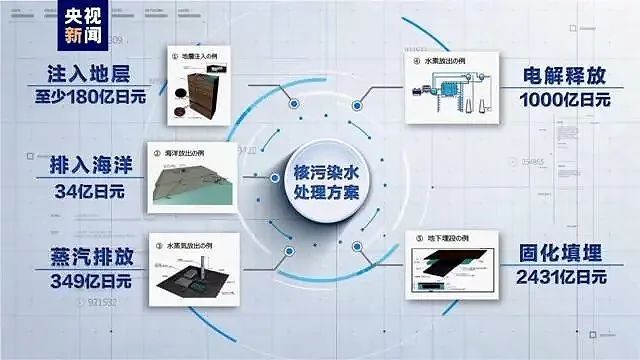 圖為核污水5種處理方式需付出的費用。(圖片來源于網絡)