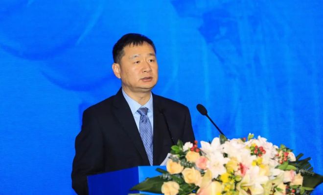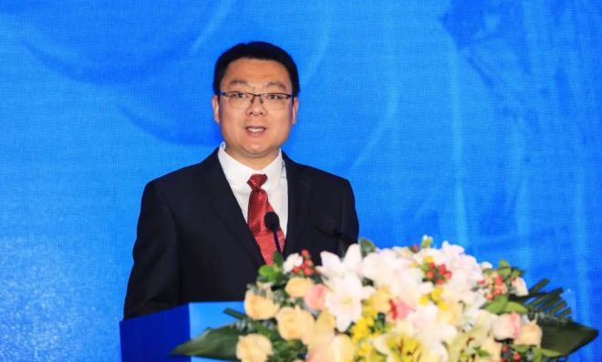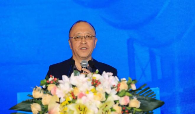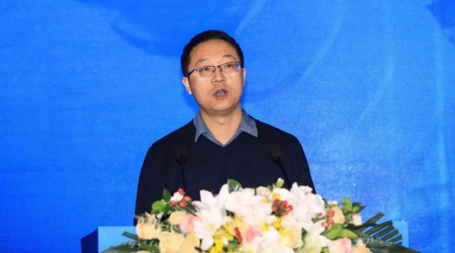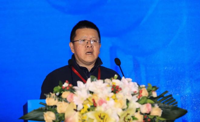 圖為姜圣才做《冶金礦山行業(yè)運(yùn)行情況與加快改善資源保障的主要舉措》主題報(bào)告。