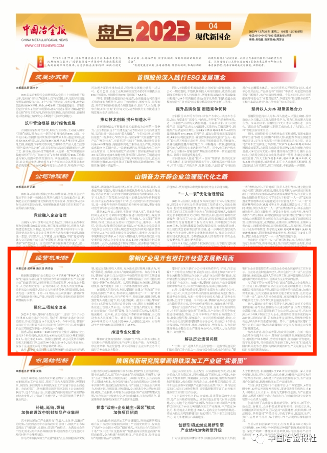 惟改革者進,惟創新者強,惟改革創新勝。在新一輪國企改革深化提升行動中,攀鋼礦業將繼續聚焦加強黨的建設、提質穩產降本增效、勞動效率提升、紅格南礦開發建設、數字化轉型等,持續推進改革創新工作,為實現“打造成為國內最具競爭力、控制力的釩鈦磁鐵礦生產及經營企業”戰略目標提供強勁的動力。