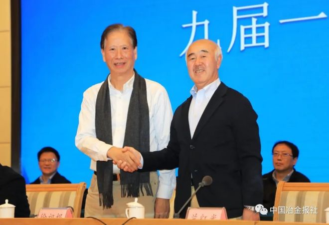 12月19日,在中國新聞攝影學會九屆一次理事會上,蘭紅光當選中國新聞攝影學會會長。圖為蘭紅光當選后,徐祖根與蘭紅光親切握手。(記者 顧學超 攝)