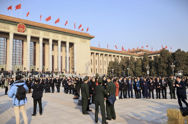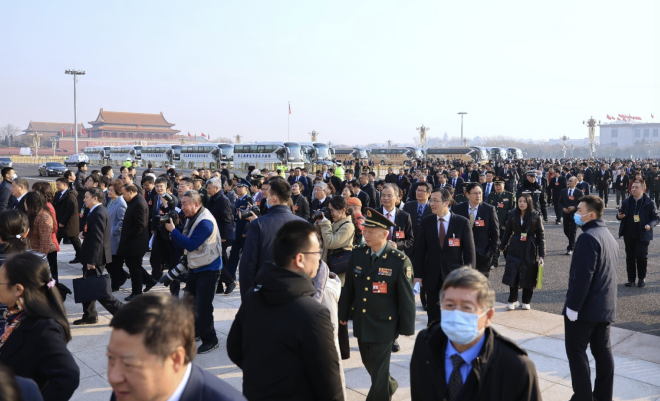閉幕會前,各界委員們紛紛在人民大會堂前合影留念