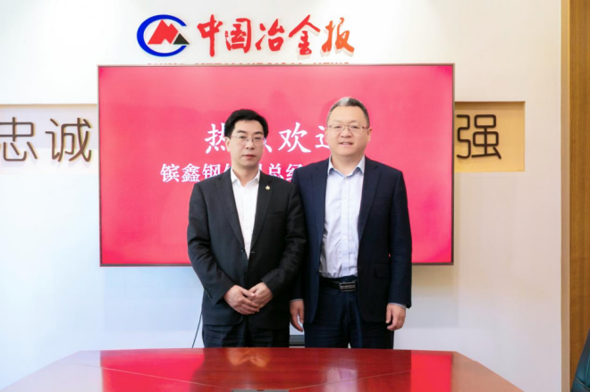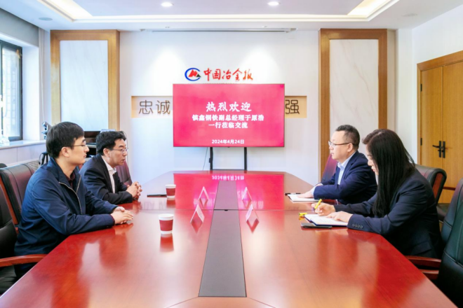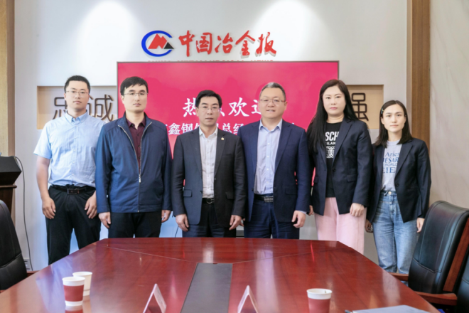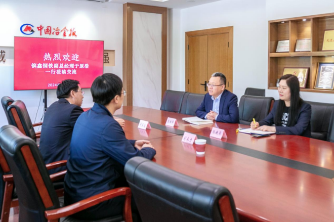 4月24日,江蘇省鑌鑫鋼鐵集團有限公司(以下簡稱“鑌鑫鋼鐵”)副總經理于原浩一行到訪中國冶金報社,與中國鋼鐵工業協會副秘書長,中國冶金報社黨委書記、社長范鐵軍就雙方未來合作展開交流。