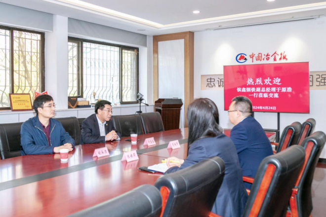 鑌鑫鋼鐵相關領導和中國冶金報社社長助理兼經濟發展中心主任陳曉莉、新聞制作中心部主任樊三彩、鋼鐵部副主任王志等參加了座談交流。