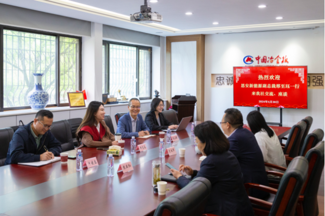 4月30日,思安新能源股份有限公司副總裁邢至玨一行到訪中國冶金報社,與中國鋼鐵工業協會副秘書長,中國冶金報社黨委書記、社長范鐵軍進行座談交流,雙方就能源技術助力鋼鐵行業綠色低碳發展的話題展開討論。