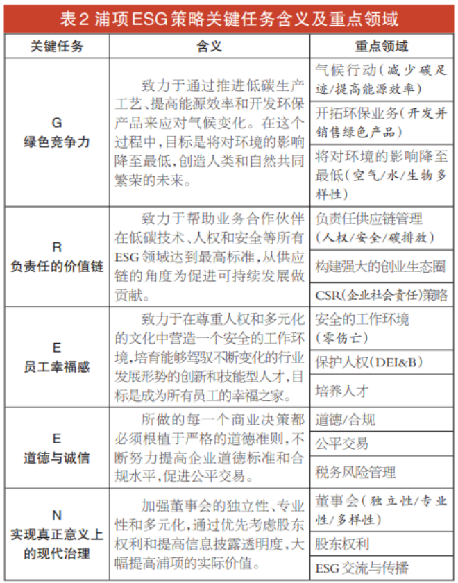 浦項ESG策略中5項關鍵任務的含義和重點領域如表2所示。