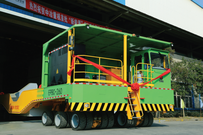 圖為中冶寶鋼旗下“中冶重機”品牌260噸電驅(qū)鐵水車下線。