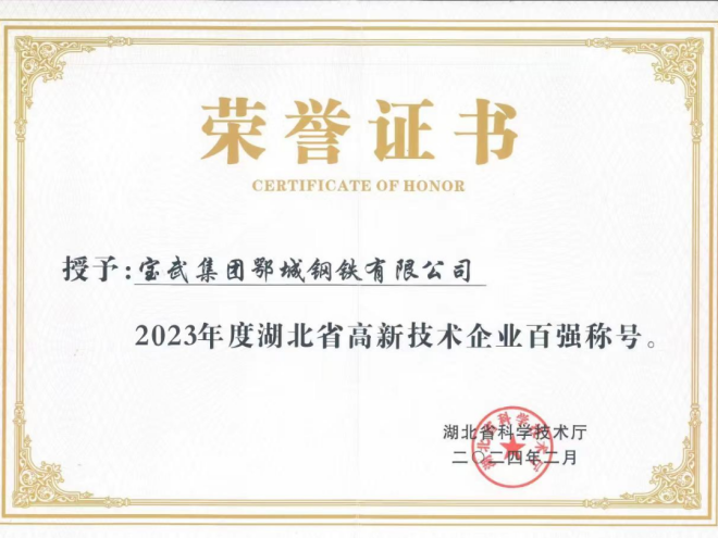 鄂鋼堅(jiān)持以科技創(chuàng)新驅(qū)動(dòng)企業(yè)高質(zhì)量發(fā)展為主線,聚焦公司“精品、綠色、智慧”和“效益”發(fā)展,加快各領(lǐng)域科技創(chuàng)新,先后被評(píng)為國(guó)家“高新技術(shù)企業(yè)”、“綠色工廠”、環(huán)保超低排放A級(jí)企業(yè)、鋼鐵行業(yè)“綠色發(fā)展標(biāo)桿企業(yè)”、“中國(guó)優(yōu)秀鋼鐵企業(yè)品牌”以及湖北省企業(yè)和制造業(yè)企業(yè)“雙100強(qiáng)”、智能制造示范單位、支柱產(chǎn)業(yè)細(xì)分領(lǐng)域隱形冠軍企業(yè)。