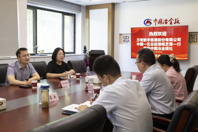 萬幫數字能源中國一區大客戶總監唐凌麗,中國冶金報社副總編兼新媒體中心主任呂兵、新媒體中心新媒體部副主任呂林參加座談交流,就下一步具體合作事宜達成共識。