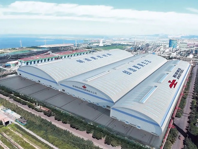 圖為鞍鋼工程技術公司鲅魚圈原料廠棚化封閉項目鳥瞰。