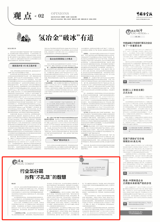 在筆者看來(lái),這套邏輯對(duì)鋼企同樣適用,冷靜研判形勢(shì),審視企業(yè)真正擅長(zhǎng)的領(lǐng)域,保持定力,在技術(shù)和產(chǎn)品上求新求變,做成單項(xiàng)“冠軍”(《中國(guó)冶金報(bào)》長(zhǎng)期推出“尋冠”欄目,報(bào)道的就是這方面典型案例),才是長(zhǎng)久發(fā)展之計(jì),也是共同營(yíng)造國(guó)內(nèi)良好市場(chǎng)秩序的有效手段。(郭達(dá)清)