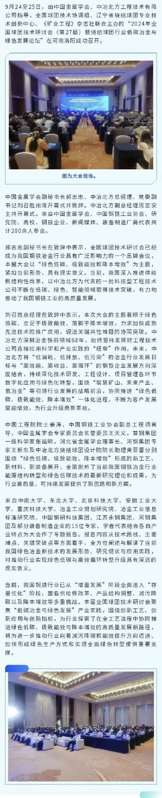 2024年全國球團技術(shù)研討會(第27屆)暨燒結(jié)球團行業(yè)低碳冶金與綠色發(fā)展論壇成功召開