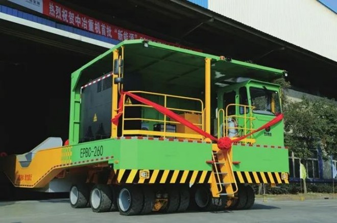 圖為中冶寶鋼“中冶重機”品牌260噸電驅(qū)鐵水車下線現(xiàn)場。