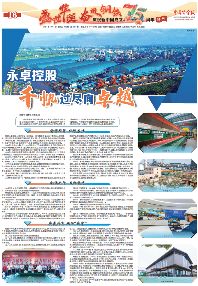 今年是中華人民共和國成立75周年,也是永卓控股有限公司成立40周年。40年櫛風(fēng)沐雨,這座在改革開放的大潮中應(yīng)運而生的軋鋼廠,勇敢地向天空伸出夢想的雙手,用“篳路藍(lán)縷,以啟山林”的艱苦奮斗精神直面多變的市場,以“道阻且長,行則將至”的創(chuàng)新求變態(tài)度在激烈競爭中突圍,在時代的淬煉中成就了一家千億級現(xiàn)代企業(yè)集團(tuán)的輝煌。