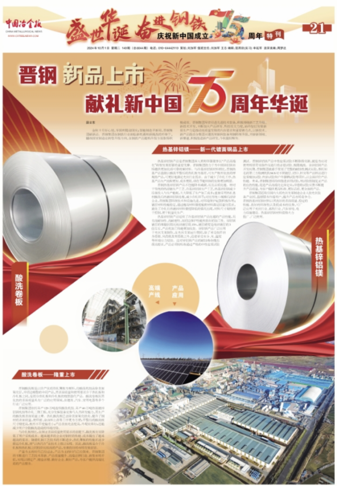 熱基鋅鋁鎂產品是晉鋼集團深入貫徹李強董事長“產品高端化”轉型發展部署的重要支撐。晉鋼集團致力于為中國鋅鋁鎂市場提供更加優質可靠的原材料。與冷基鋅鋁鎂材料相比,晉鋼熱基產品直接以酸洗平整后的熱軋板為基材,可生產板形優良的厚規格產品,可更好地滿足光伏行業需求。由于減少了冷軋工序,熱基產品生產流程更短、成本更低、綠色節能環保的優勢更加明顯。
