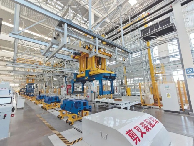 太重“智”造不僅是產品的技術升級,更是生產模式的深度變革。走進太重智能高端裝備產業園區生產車間,一條條機械臂上下揮舞,自動完成打孔、塑形、剪裁等精密工序,智能噴碼機有條不紊地進行動態數據實時噴印,數百臺自動導引的AGV小車和無人叉車往來穿梭,將加工好的零部件精準運往下一個工位……這座“黑科技”滿滿的智能下料車間,首創了重型裝備制造行業“混合套料、集中下料、智能控制”模式,即使黑著燈,照樣能生產。這樣的智能制造場景,在太重已屢見不鮮。
