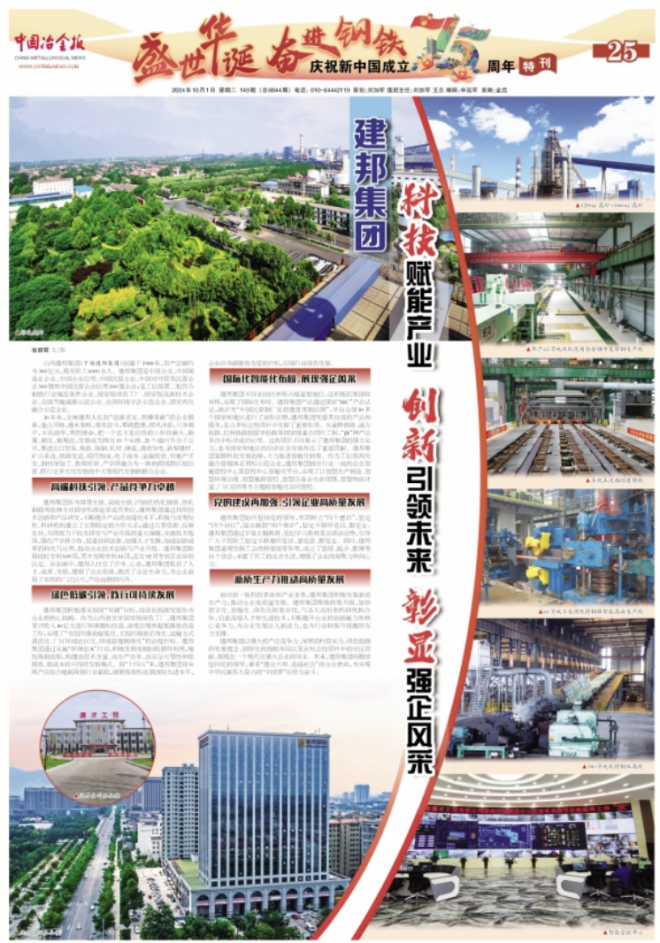 山西建邦集團(下稱建邦集團)創建于1988年,資產總額約為300億元,現有職工6000余人。建邦集團是中國企業、中國制造業企業、中國企業信用、中國民營企業、中國對外貿易民營企業500強和中國民營企業信用100強企業;是工信部第二批符合鋼鐵行業規范條件企業、國家級綠色工廠、國家級高新技術企業、全國節能減排示范企業、全國環境守法示范企業、國家兩化融合示范企業。
